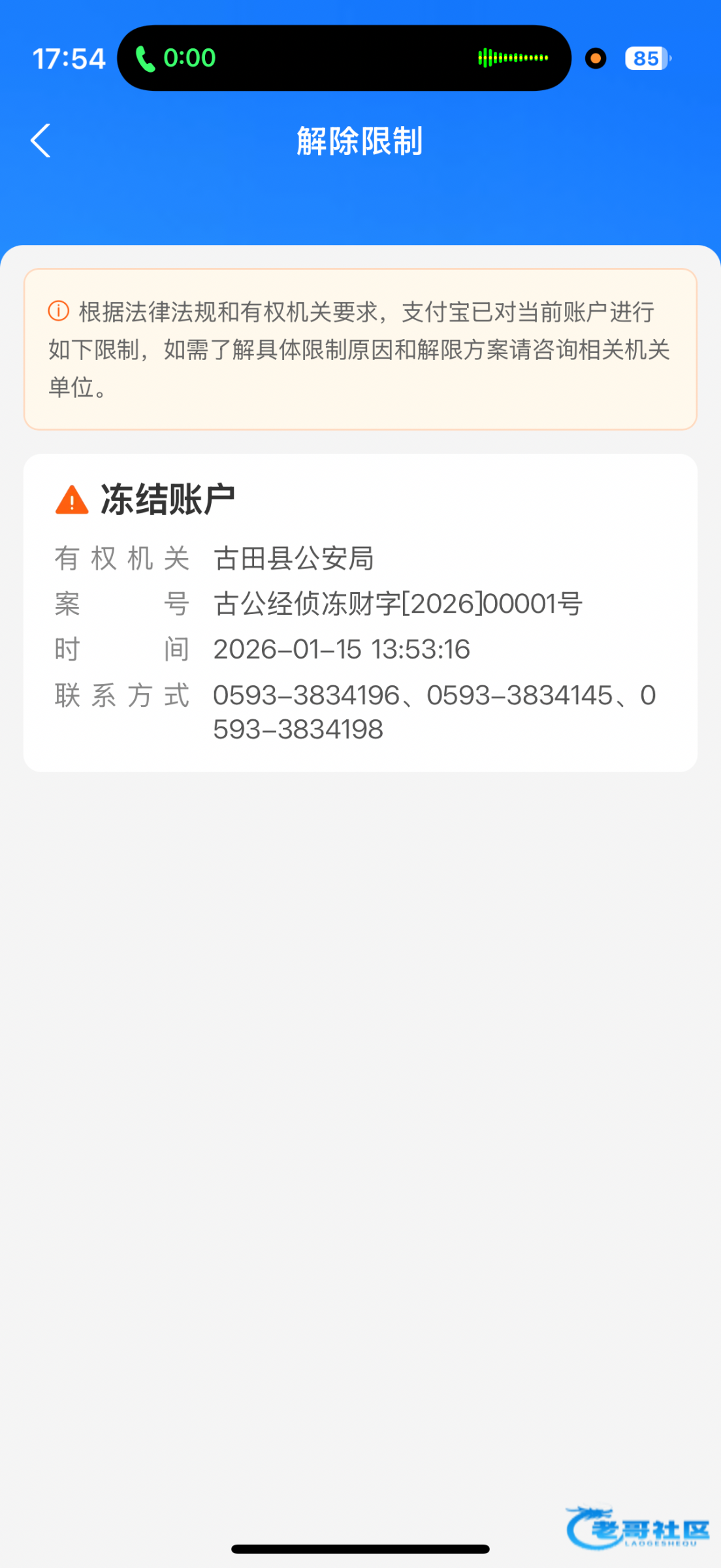 有人打黑钱了,现在只能等,有的时间短,我当初冻了三个月解冻,还有人五年都没解开