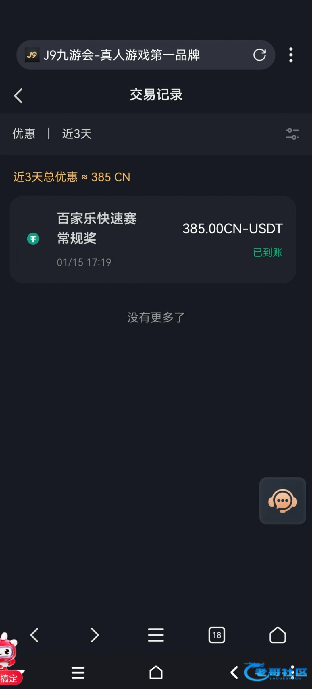 j9.com 老白菜了,好多人都发过,注册账号送了5u没打出来,然后提示送一张极速百家乐赛门票,不咋玩百家乐,靠运气打了个第一名,388的奖金,说是次日6点前到账,6点没到找客服添加的。三倍流水才可以提款,麻将一爆了一个500倍,提了150u!九游会挺稳的,白嫖1100块钱!没注册的老哥可以去试试运气!