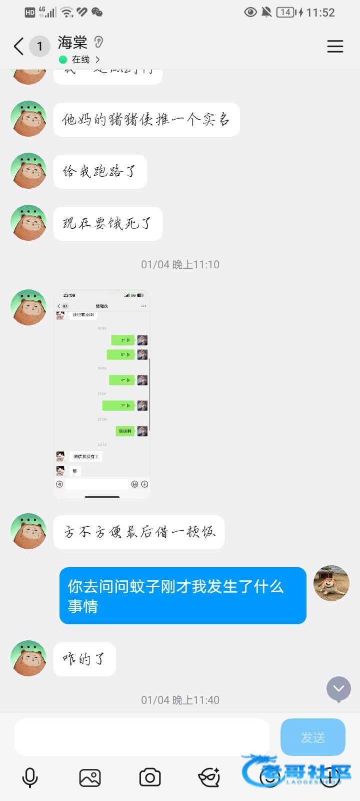我自认为我对身边的人没有差过,但是偏偏就是让我遇见了这样一个烂人,小梦小1因为一些事情忘本被我删掉拉黑了,好歹有骨气,后面再困难,至少人家后面从来没有找过我。这个逼后面还好意思回来找我,看着可怜帮了他,原本没打算让他还,自己口口声声在哪里承诺,在前天还给我发信息让我加回微信,发工资了就给我,刚好我没钱,就放在心上了,结果就是一拖再拖,玩消失,wcnm。阿毕真名(王一品),兄弟们认准这个诈骗犯,他找很多人都借了钱,他现在是完全没有能力还的,小心别被骗了。微信的聊天记录因为我把他删了拉黑了,找不到了,就没办法给兄弟们看了,这个逼喜欢装死人